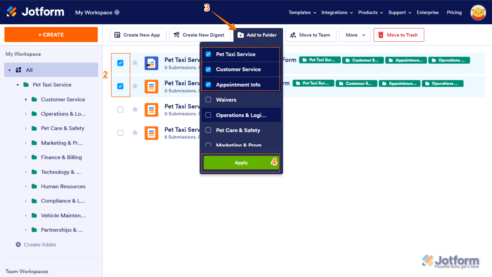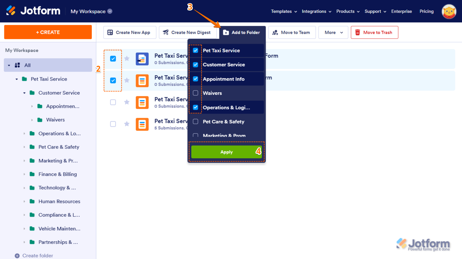 - Now, in the Dropdown menu, put checks in the boxes next to the labels you’d like to apply to your selected assets, and click on Apply.
