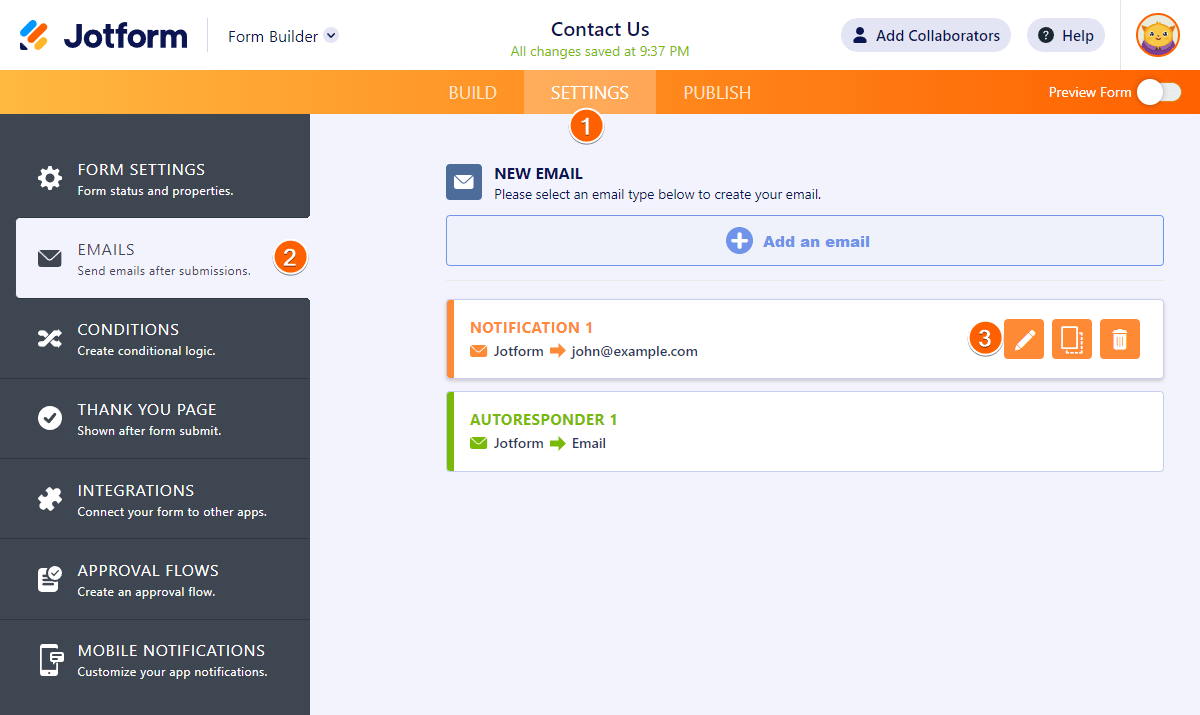 If the issue continues, or you don’t want our email addresses noreply@jotform.com or noreply@formresponse.com as the Sender Email, you can use your email servers instead. To do that, you’ll need to set up SMTP. We’ve got a guide about How to Set Up a Custom Sender Email with SMTP that’ll help you do that.