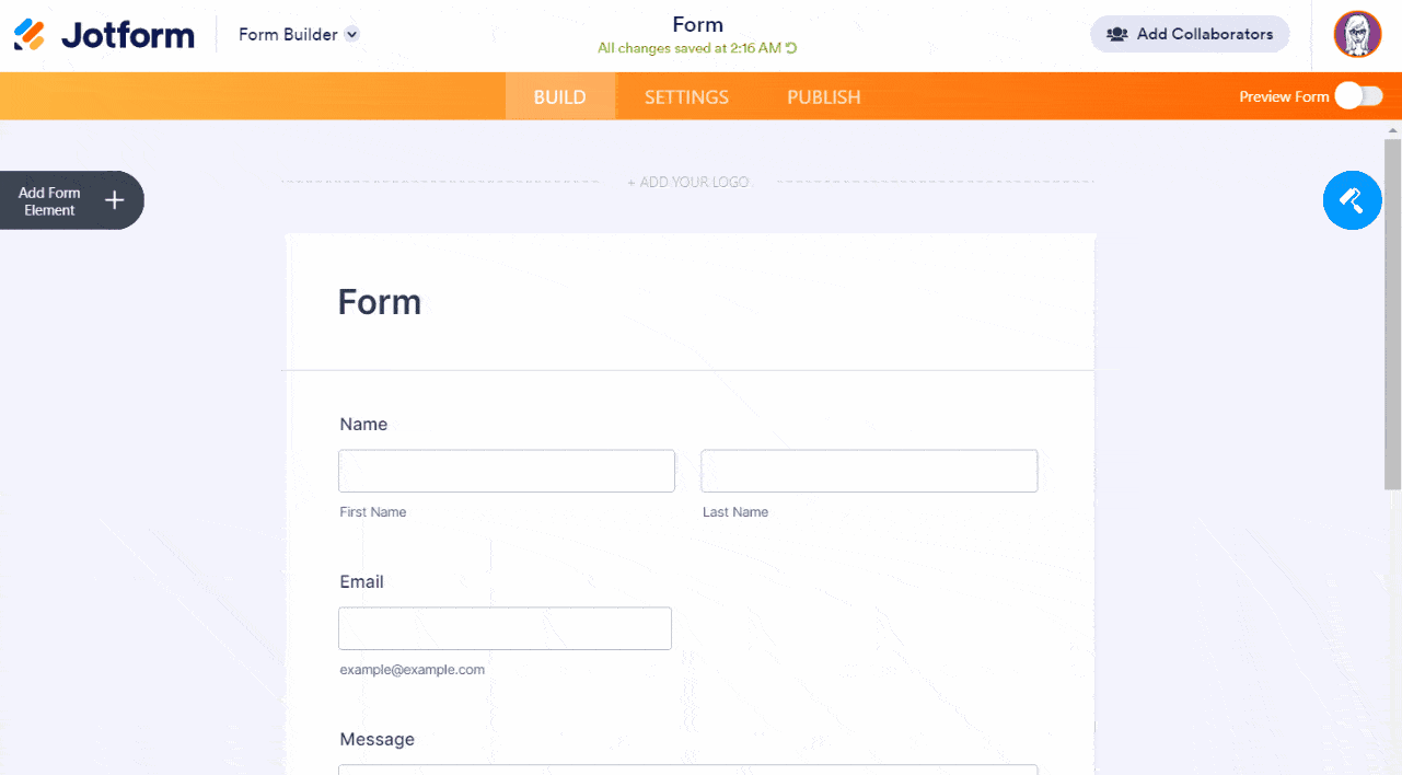 Show More Options button in the Form Settings tab of the Jotform Cards Form Builder Settings