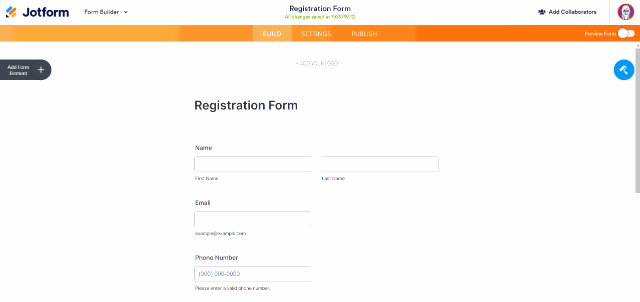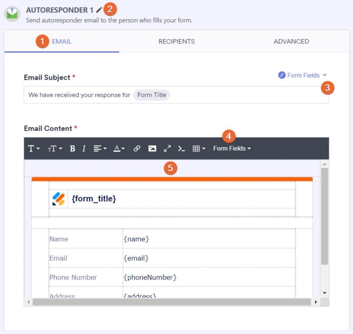The Form Builder automatically creates an autoresponder email once you add an Email element to your form.