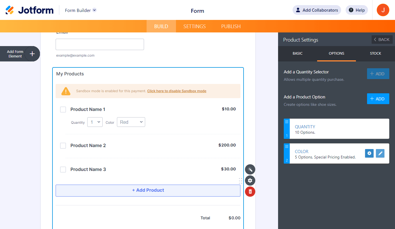 - You can add multiple Product Options with no limit and turn their options into sub-products. To learn more about setting up other Quantity Selector and Product Option properties, you can check out our guides on How to Add Options to Payment Forms and How to Turn Product Options into Sub-Products.