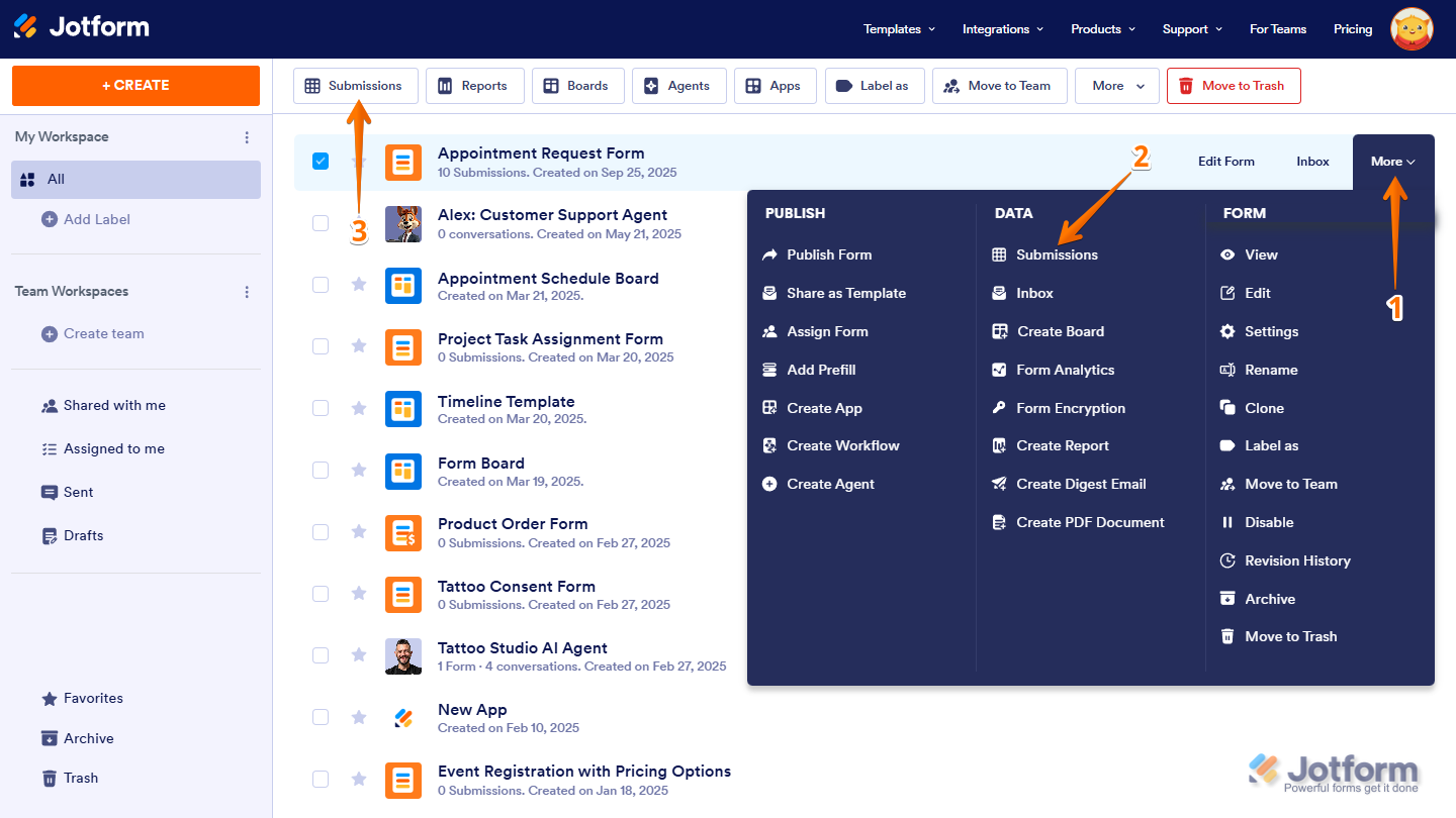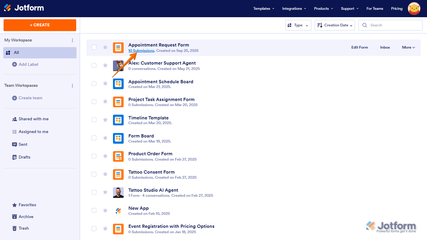 Accessing your form submissions from your My Workspace page is easy. Let’s do it: