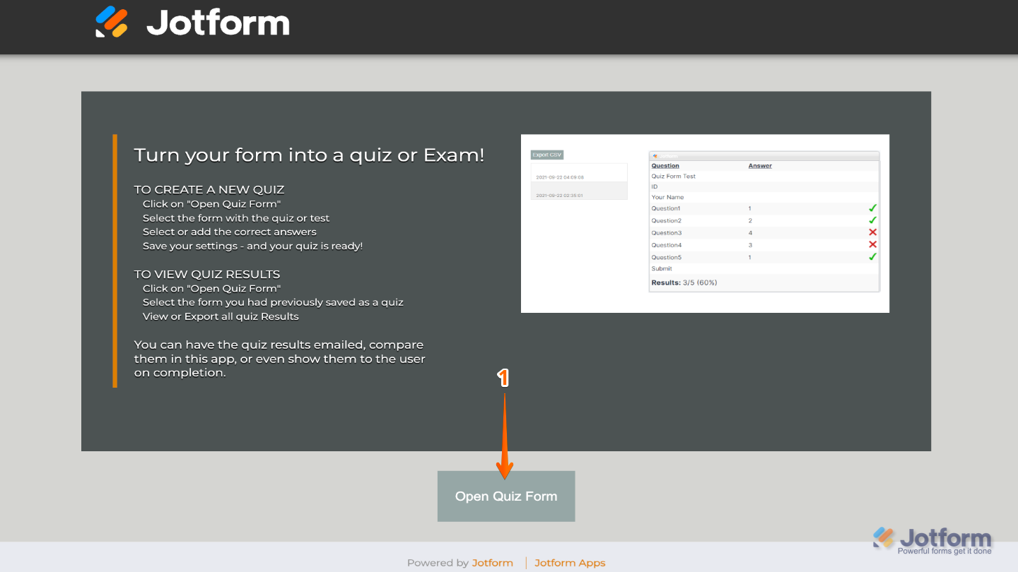 - Go to the Quiz Form page, and click on Open Quiz Form.