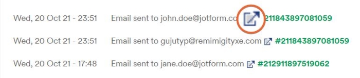 That’s it. You’ll now see a table showing the email logs for your forms, giving you a clear snapshot of what’s been sent and when. If you want to dive into the details of a specific email, simply click the External Link icon next to it to view more information.