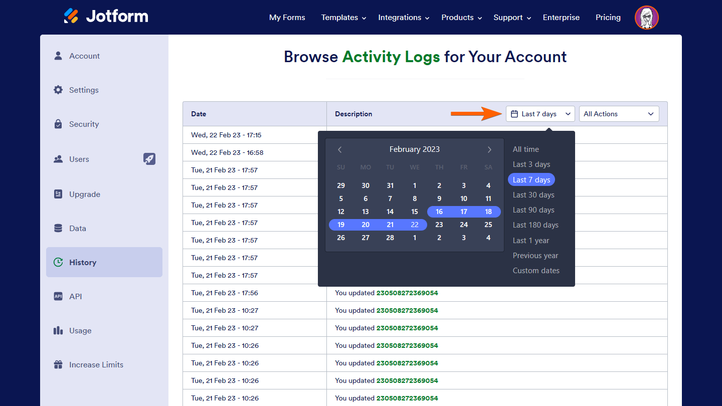 Jotform’s email logs make it easy to see what’s happening with your form emails at a glance. You can check when each email was sent, who received it, and whether it was delivered successfully, all from your Account History page. It’s a simple, helpful way to stay on top of your email activity and quickly spot or troubleshoot any delivery issues if they arise.