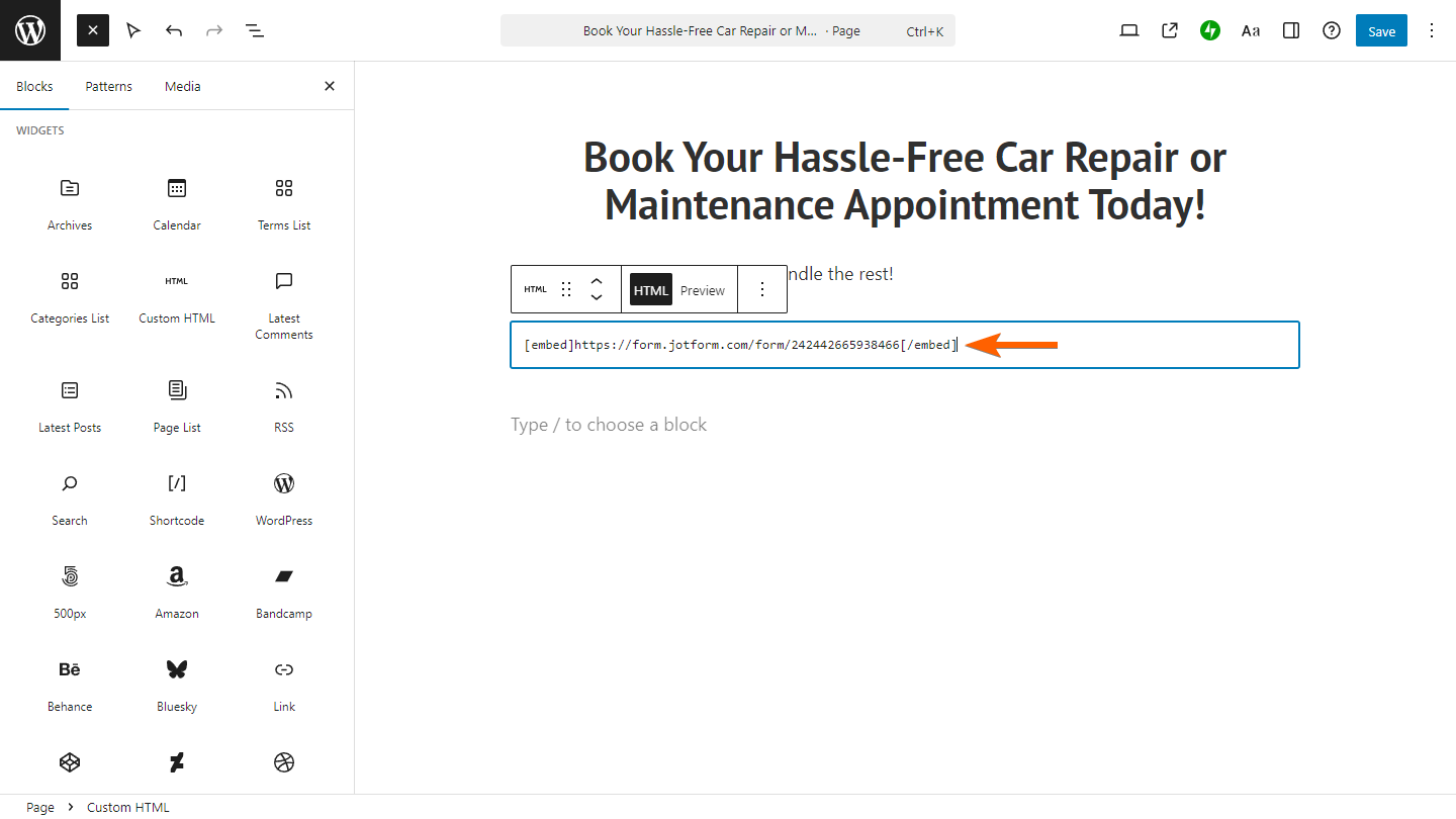 WordPress.com is a managed WordPress website, while WordPress.org is a self-hosted WordPress website. If you’re looking to embed a form to your WordPress.org website, please visit the following guide: Adding Forms to WordPress.org Version