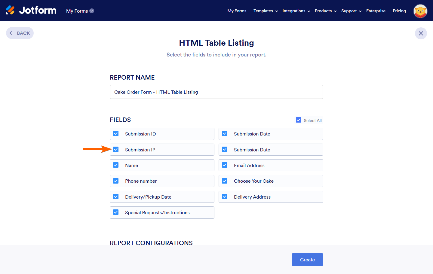 You can also include the submission IP address in different form reports. To do this, check the box next to the Submission IP option in the Fields section when configuring your report.