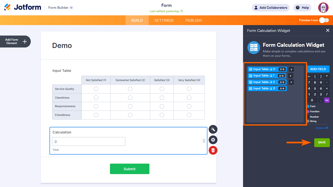 This guide shows how to perform calculations using Input Table and Form Calculation. Input Table can be found under the Basic tab in Form Elements.