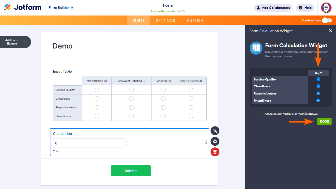 Here’s a demo form to see what it looks like. To learn more, see How to Perform Form Calculation Using a Widget.