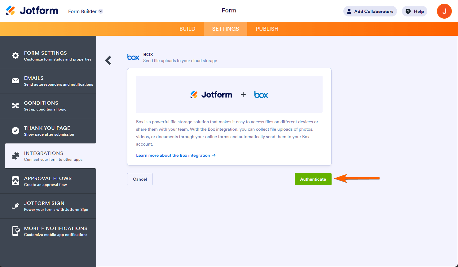 Integrating your form with Box makes your workflow more efficient, and it’s simple to set up. Here’s how: