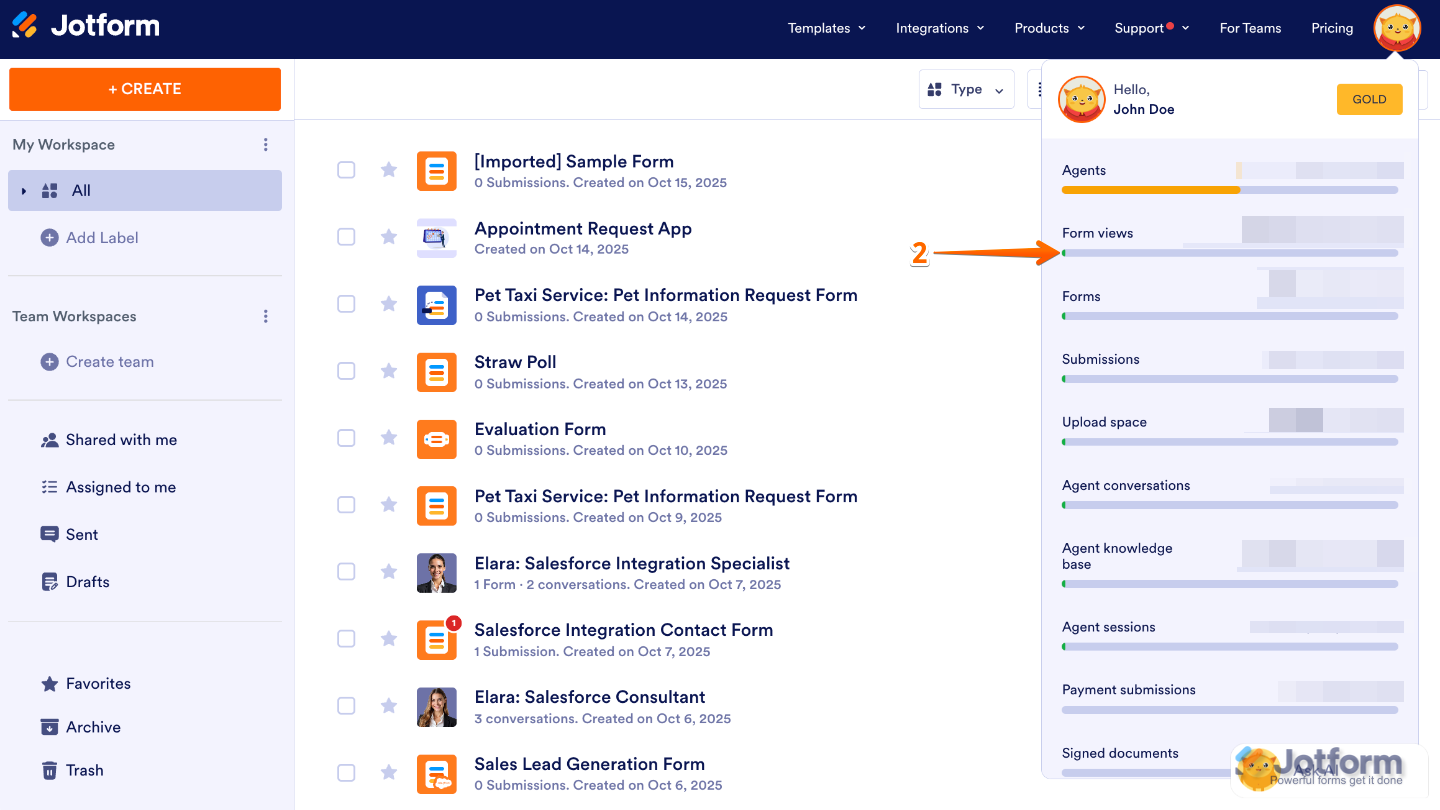 Jotform’s Form View Limit helps you keep track of how many times your forms are viewed each month. It’s a handy way to make sure your forms stay active and accessible without going over your account’s limits. Whether you’re on a Starter (Free) or paid (Bronze, Silver, or Gold) plan, keeping an eye on your Form Views ensures everything runs smoothly and your forms are always ready for users.