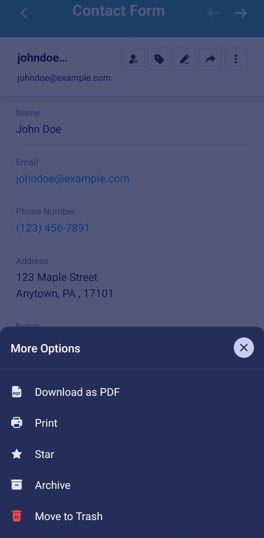 When viewing a submission in the Jotform Mobile Forms, you’ll find a few options at the top-right of the screen.