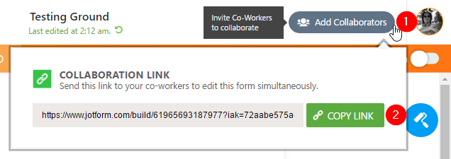 - In Form Builder, click on the Add Collaborators button at the top of the page.