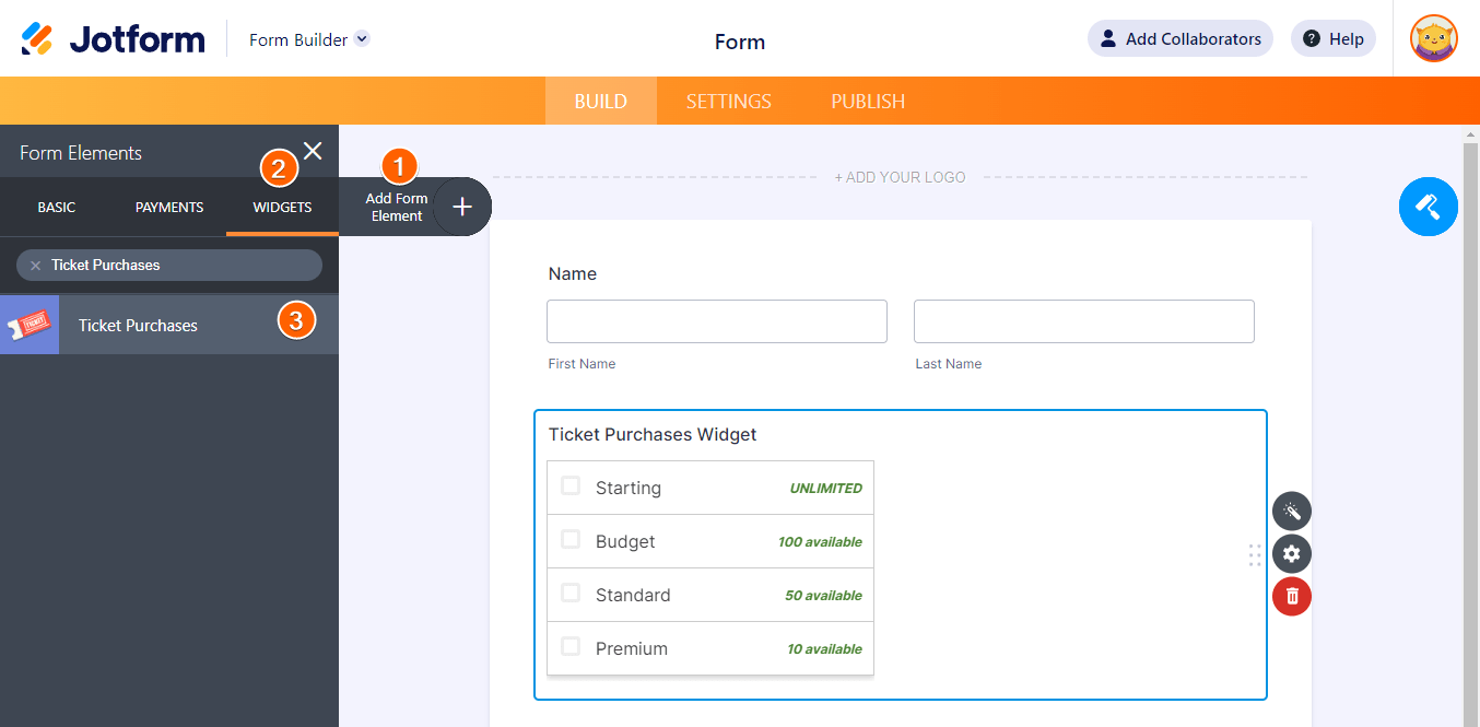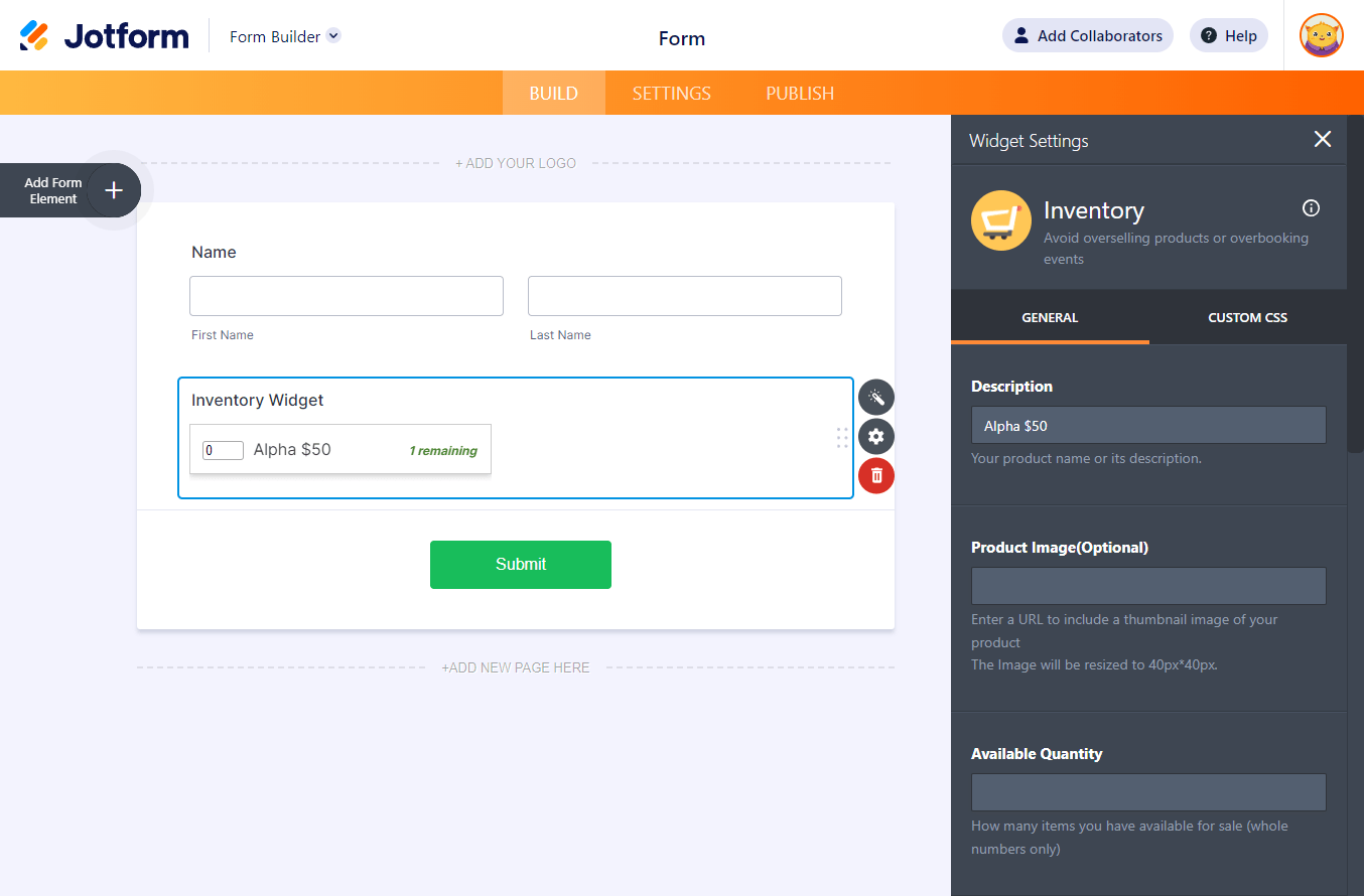 For bulk purchases, add the Inventory Widget to your form. Here’s how you can do that:
