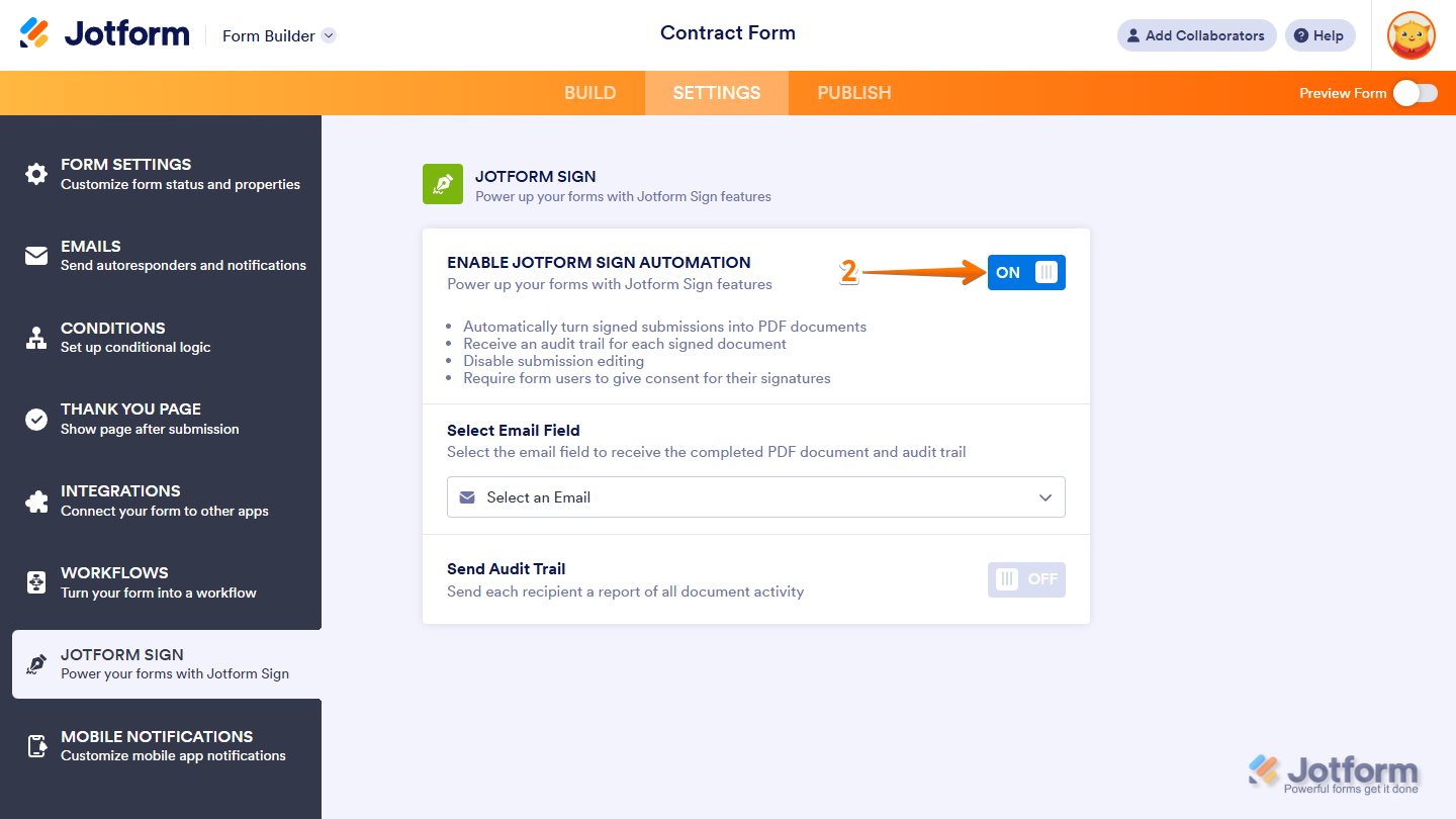 - Then, toggle Enable Jotform Sign Automation to On, and you’re all set.