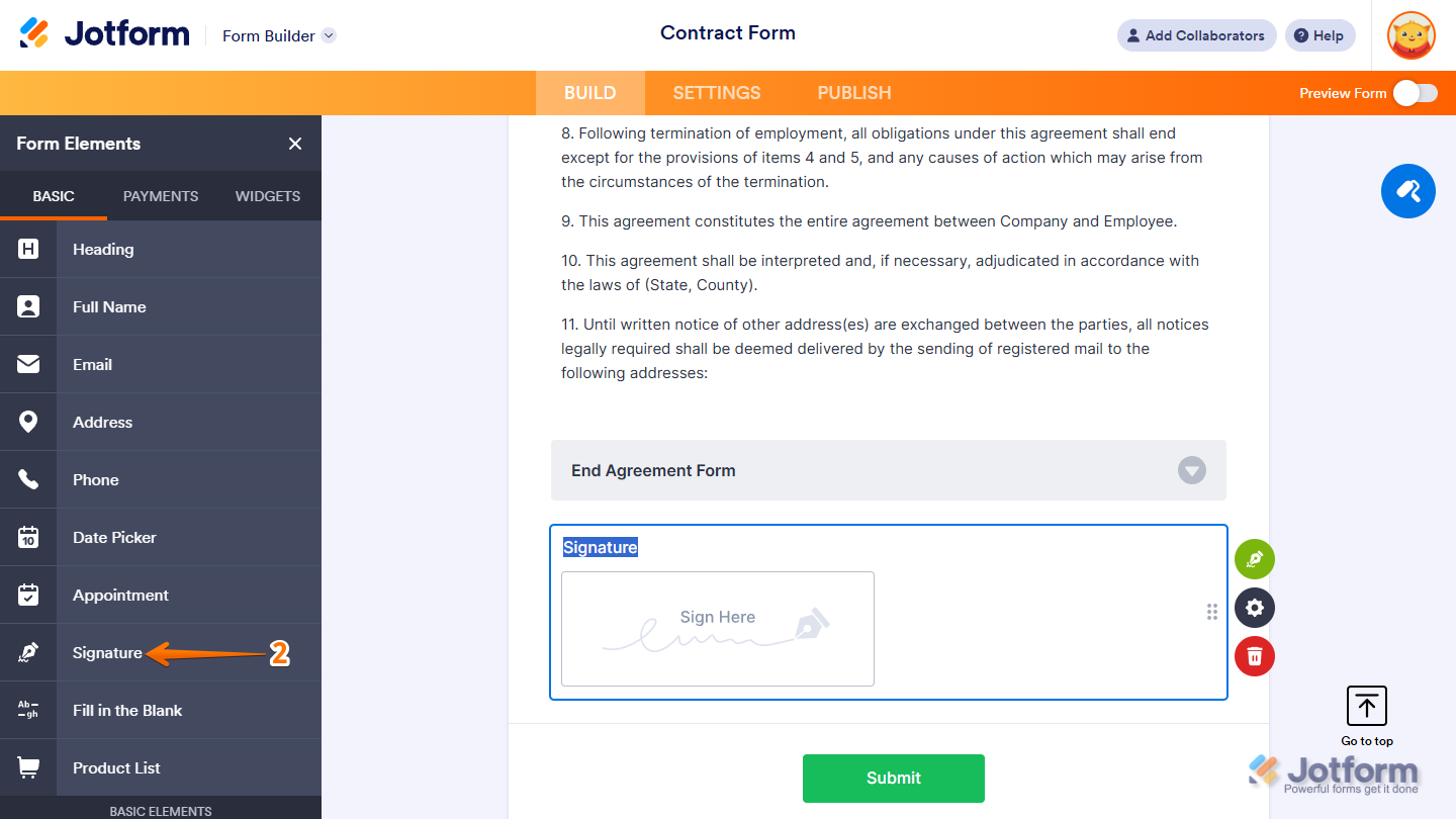 - Now, in the Form Elements menu, under the Basic tab, click on Signature to add it to your Form, and you’re all set.