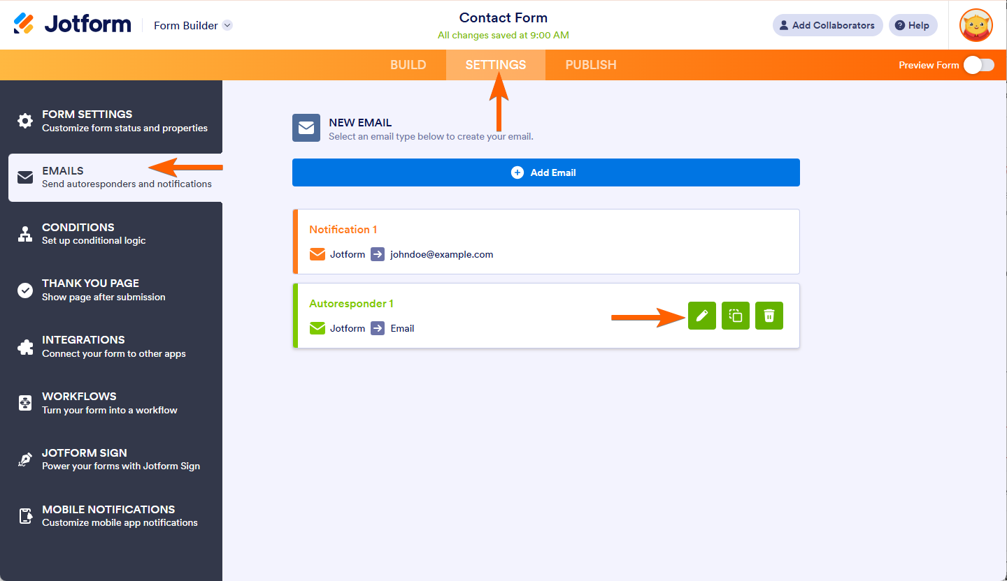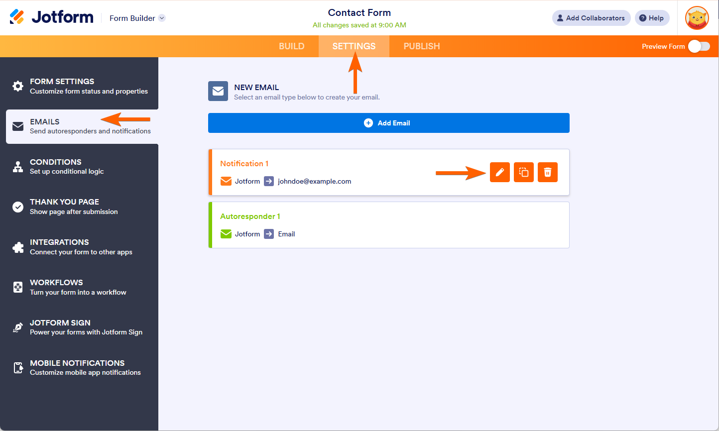 - Hover to your Email Notification, and click Edit (pencil icon).