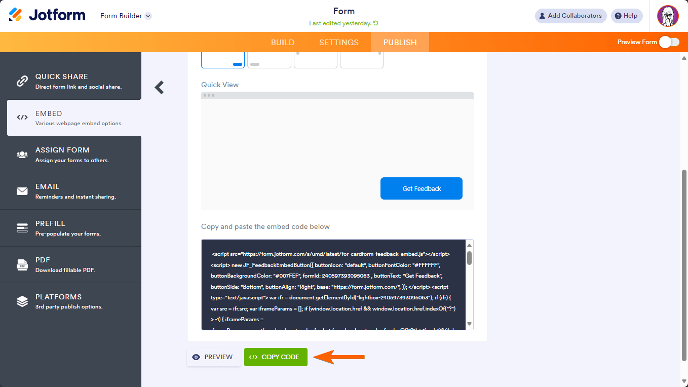 With the Classic form layout, forms were typically embedded within a page, displayed as buttons or links, or served as lightbox. Jotform Cards brings a new feature called the Floating Feedback Button. It occupies only a small section of your webpage allowing your site’s content to take center stage.