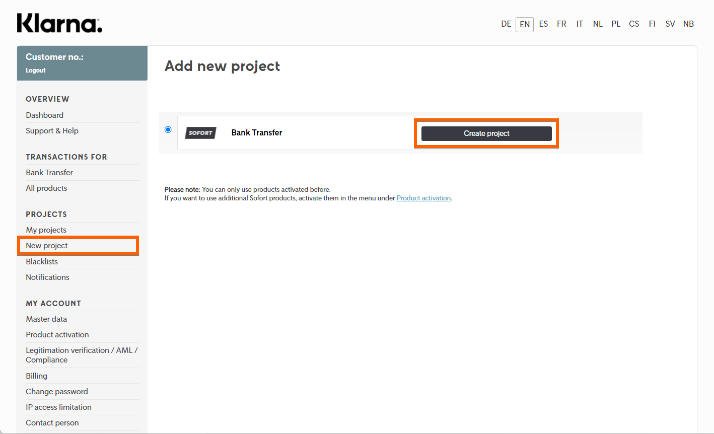 - Go to the Bank Transfer section of your Klarna dashboard.