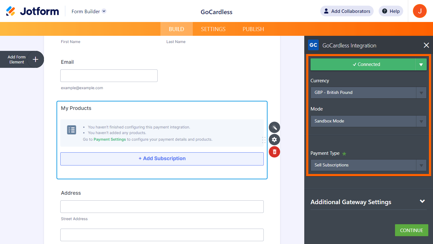 Jotform’s GoCardless integration allows you to collect subscription payments from your customers via mandate creation.