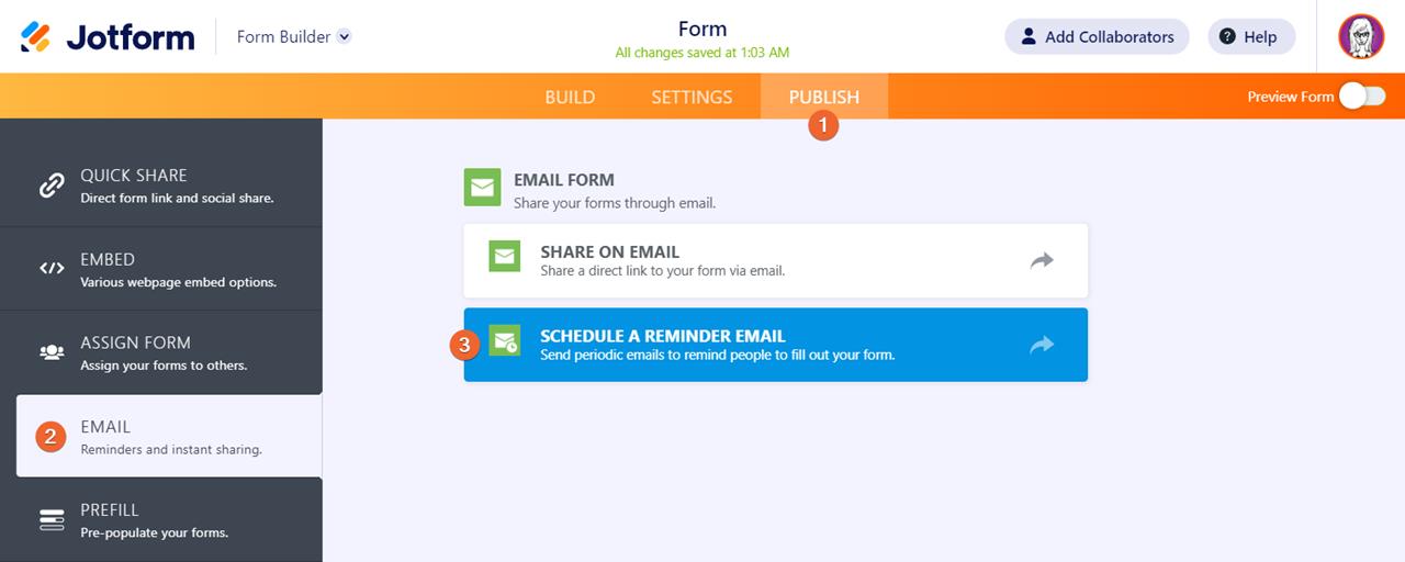 Whether you’re creating a new form or updating an existing one, setting up reminder emails on your form only takes a minute. Here’s how: