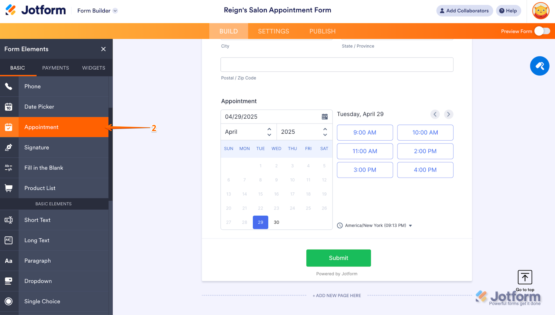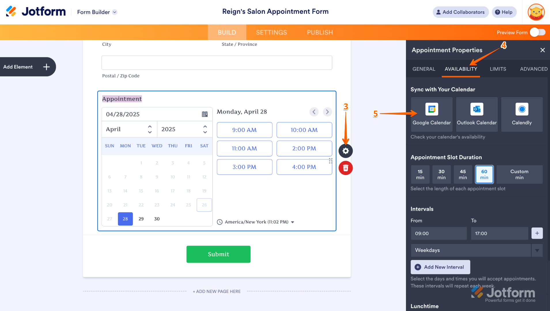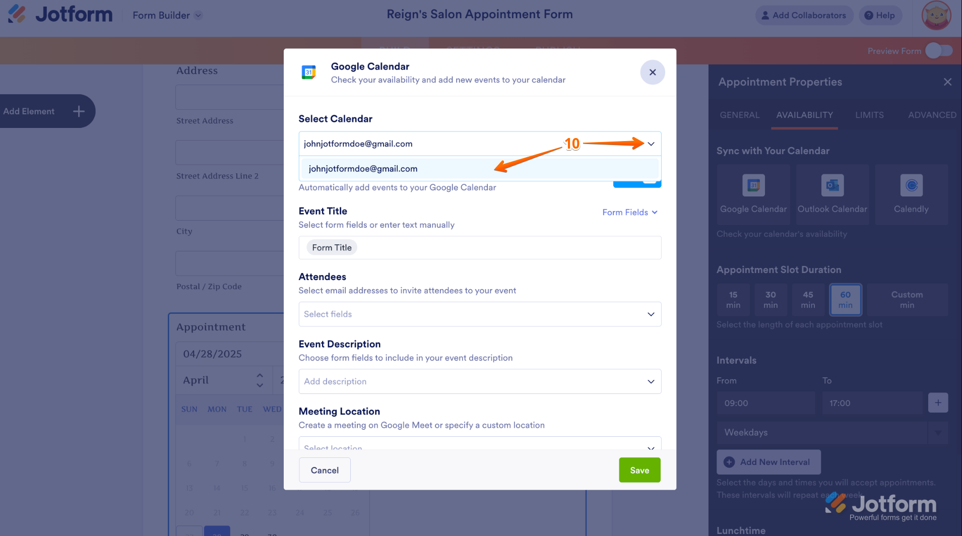 With Jotform’s Appointment field, you can now sync submissions directly with your Google Calendar, automatically adding events as users book time with you. This two-way integration offers you a simple and powerful way to stay organized and keep your calendar up to date without any manual input. Connecting your Appointment field to Google Calendar allows every submission to become a scheduled event in real time. Here’s how to do it: