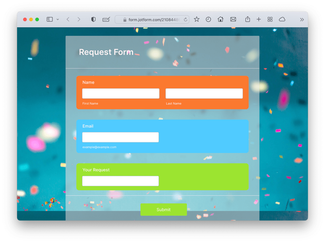 Jotform has many stylized themes for you to choose from. They allow you to quickly choose a professional style without spending too much time making it look professional. To add a theme to your form, check out our guide on How to Apply a Theme to Your Form.
