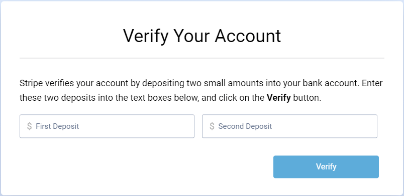 Stripe sends two small deposits to the customer’s bank account. Your customer will receive the deposit in 1 to 2 days.