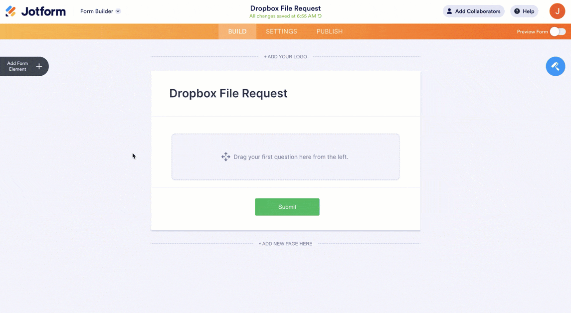 Once your File Upload form is connected to Dropbox, the next step is to share it so others can start sending files your way. Sharing your form makes it simple for people to upload documents, images, or other files directly, helping you gather everything you need quickly and keep it all in one organized place.