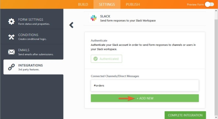 Whether you’re setting up a new form or updating an existing one, connecting your Slack account takes no time at all—here’s how: