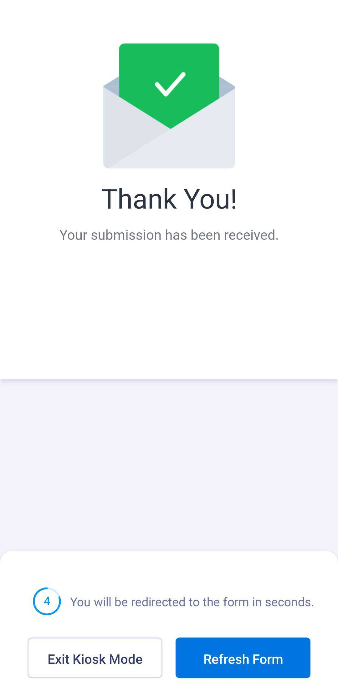 Setting your form in Kiosk Mode to show a custom Thank You Page or only a generic one, and how long it waits before refreshing after each submission, is easy. Here’s how to set it up: