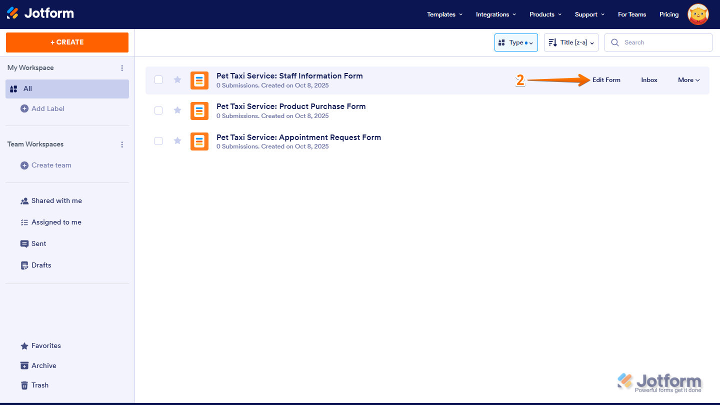 - Hover your mouse over the form you want to password protect and click on Edit Form on the right side of the page.