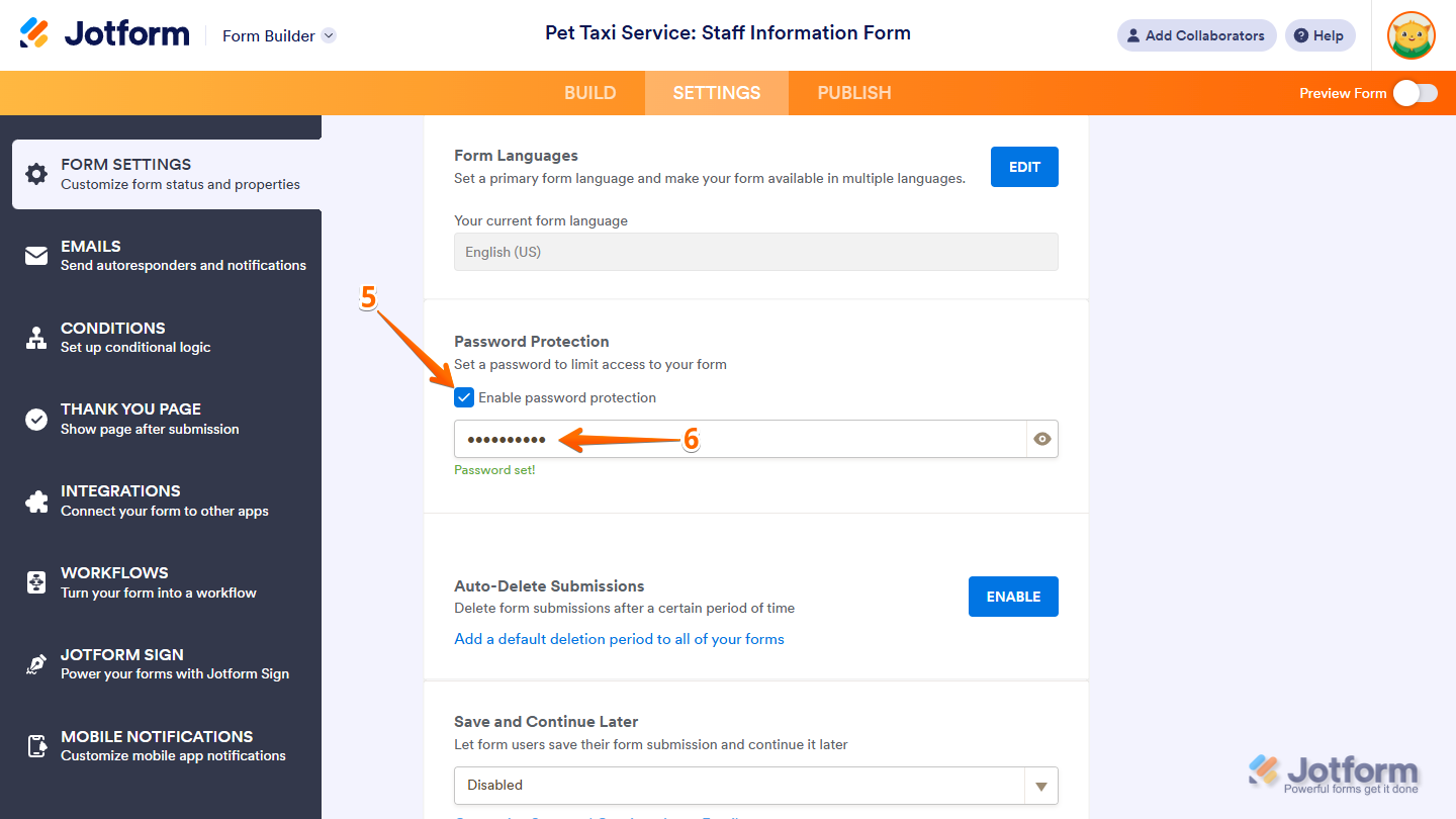 You can change or remove your form’s Password Protection anytime. Here’s how to do it: