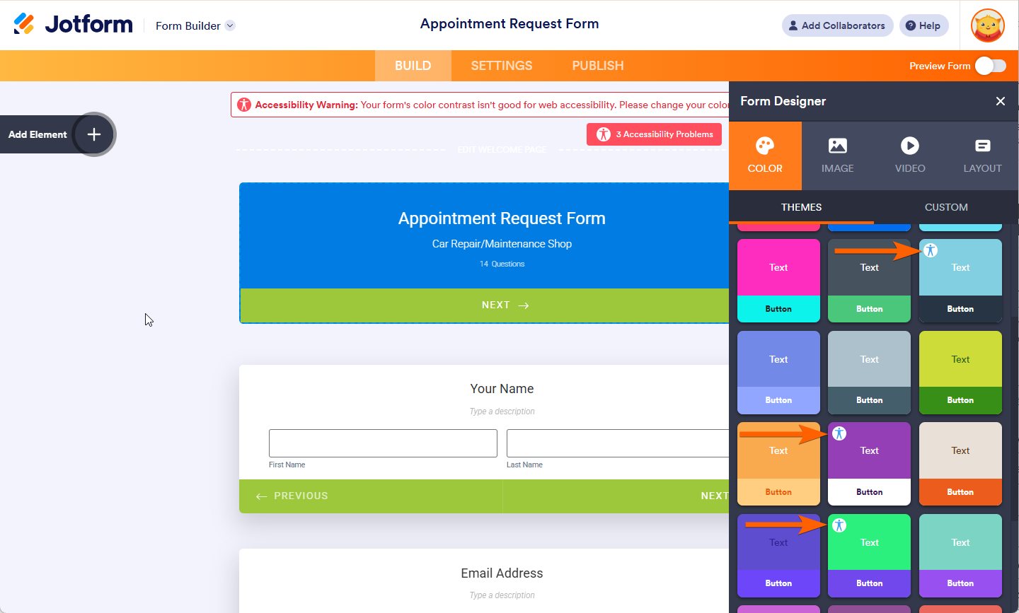 Jotform builder lets you create accessible forms that are Section 508 and WCAG 2.1 Level A and Level AA compliant. You will find out how to enable accessibility and a short FAQ below.