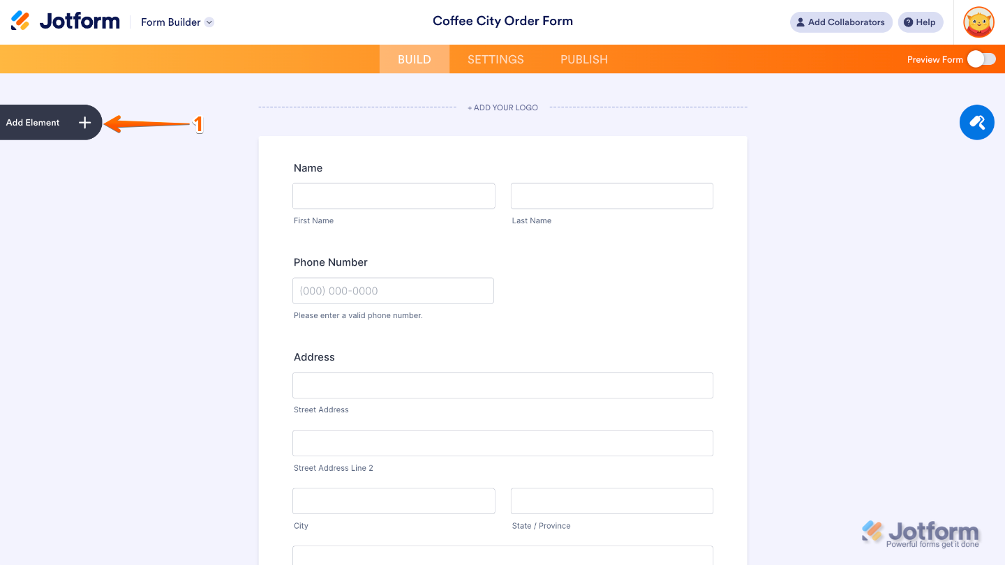 - In Form Builder, click on Add Element on the left side of the page.