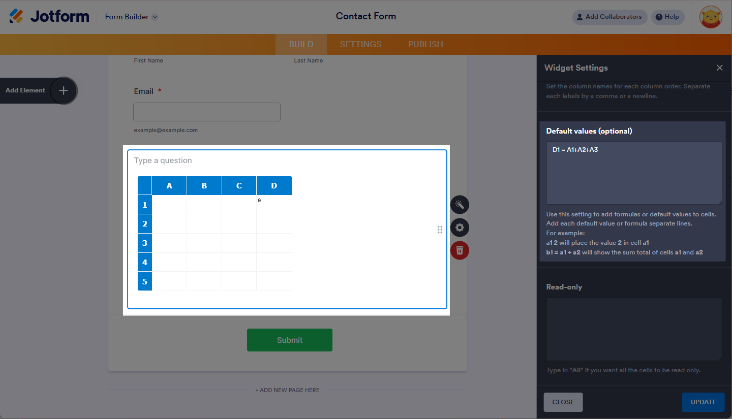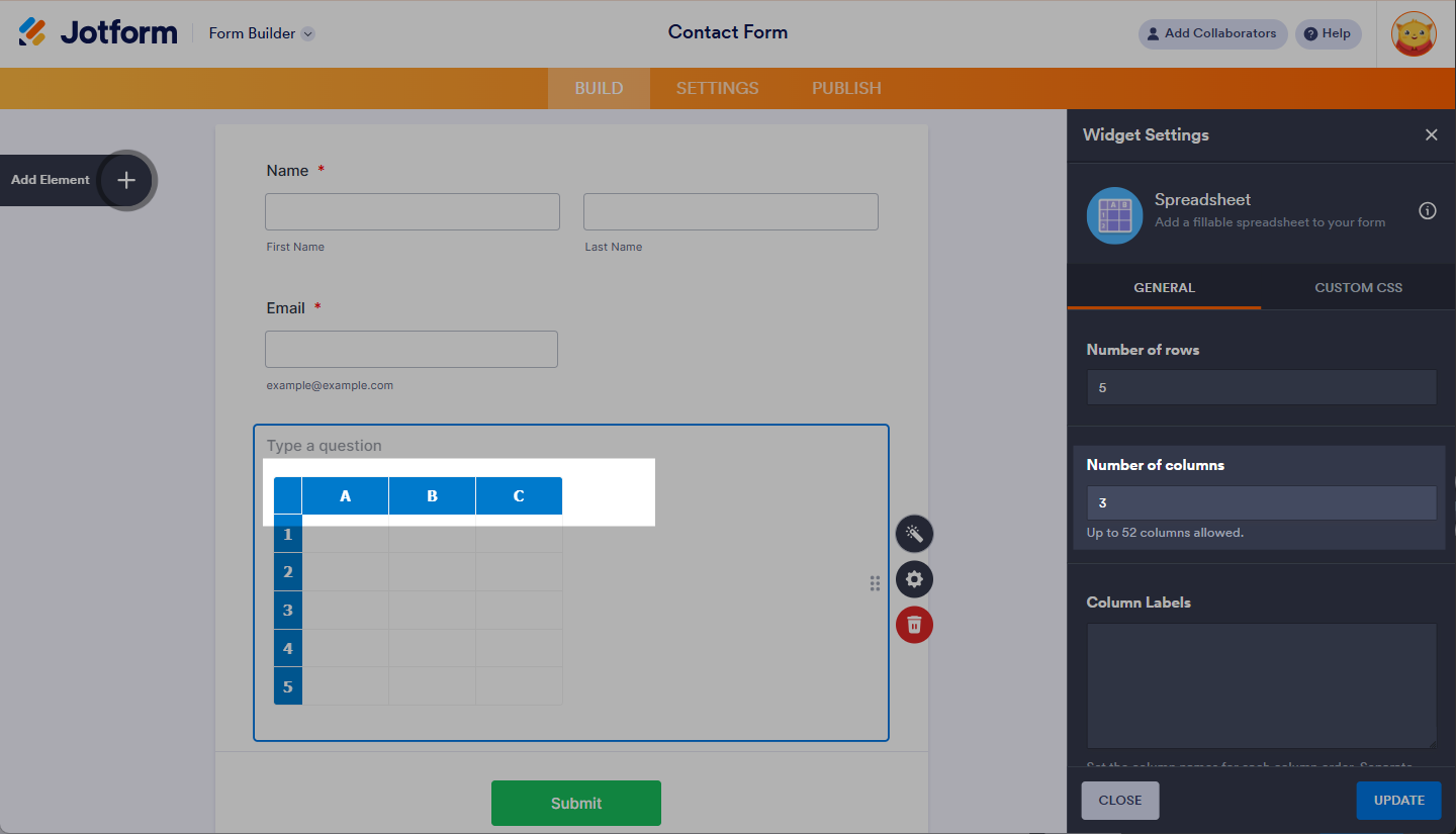 When you need to collect, analyze, and submit data in a structured spreadsheet format, the Spreadsheet widget is the perfect tool. It allows form users to input and submit data in a familiar table layout, making it easy to manage and use for various purposes, such as reporting or data analysis.