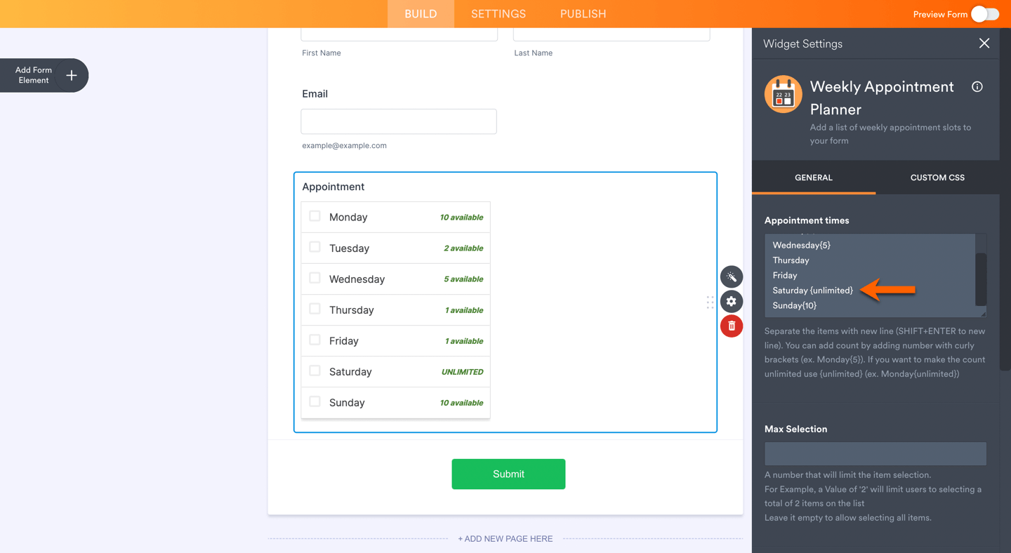Using a widget lets you set form fields, so options become unavailable once their limit is reached. Understanding how each widget works will help you choose just the right one, so let’s take a look at them: