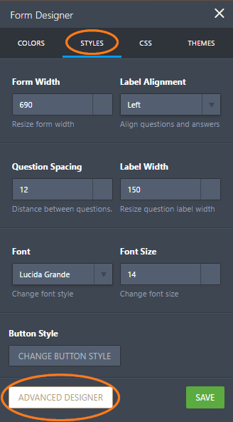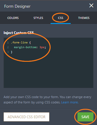 You can also change the spacing between form fields through the Advanced Designer. To get into the Advanced Designer, simply click the Advanced Designer button at the bottom part of the Styles tab of the Form Designer window.
