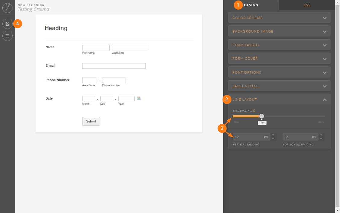The easiest would be to adjust the spacing through the Styles tab of the Form Designer. Here’s how you can do that: