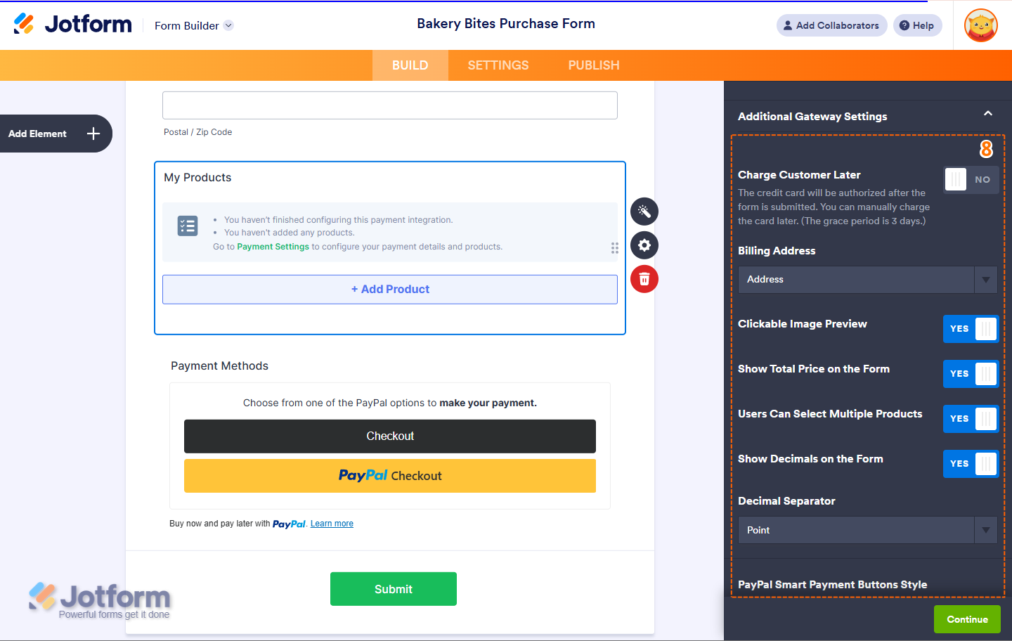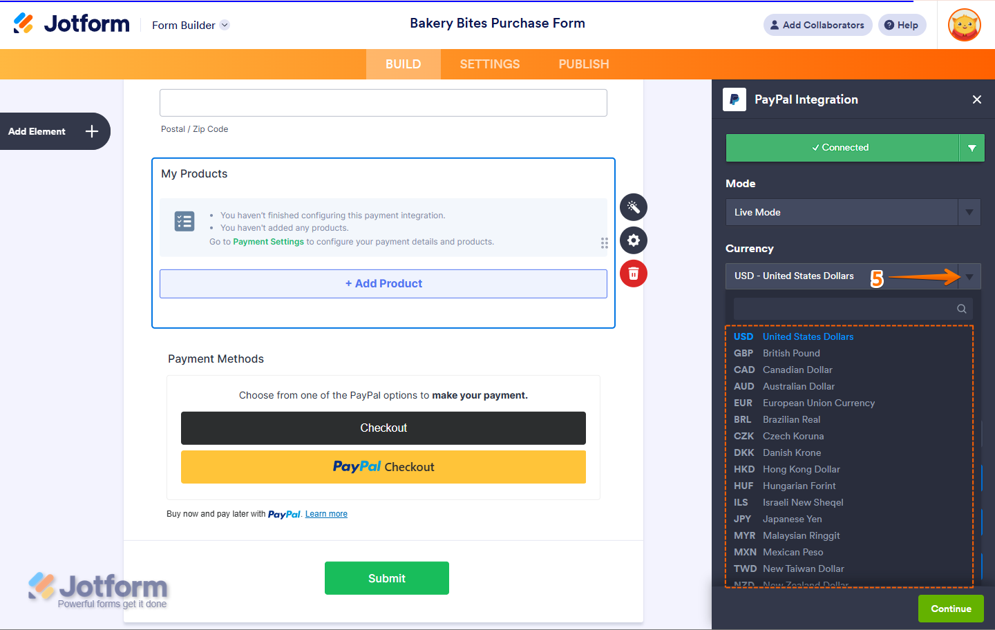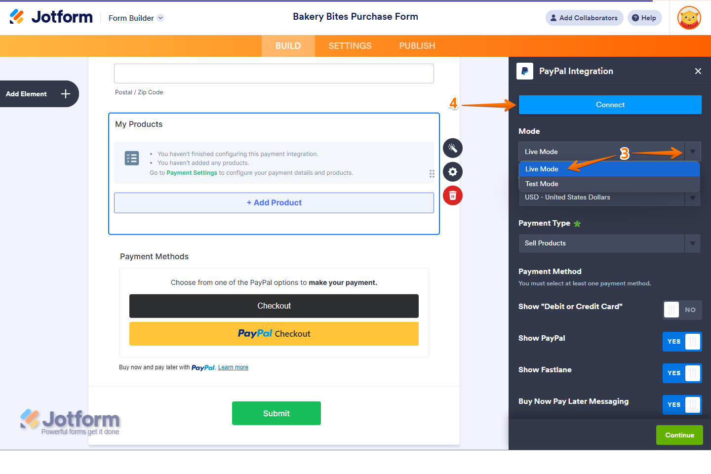 - You must have a PayPal business account to use the PayPal integration and collect money through your Jotform payment forms.
