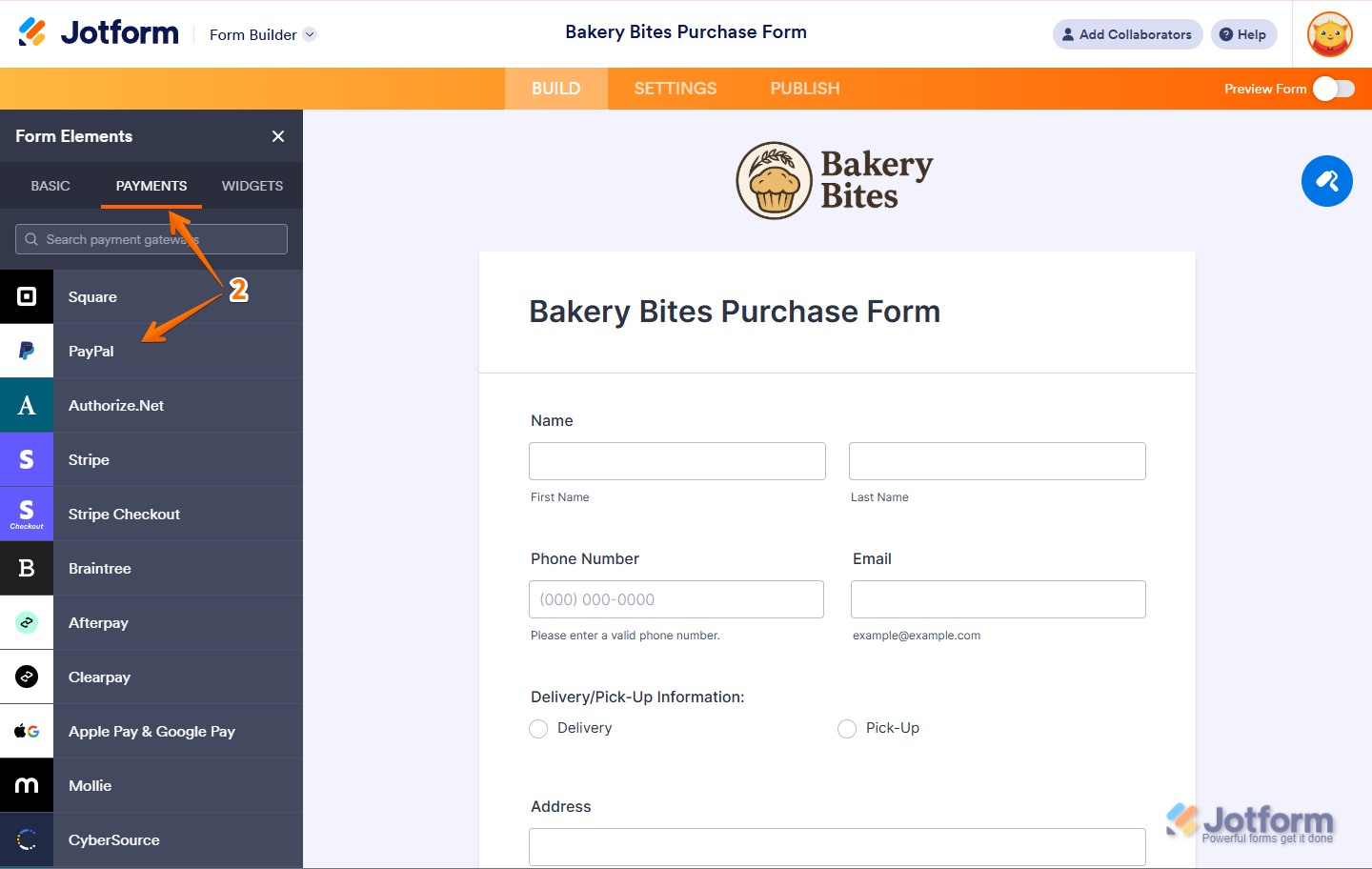 - Now, in the Form Elements menu, under the Payments tab, click on PayPal to add it to your form.