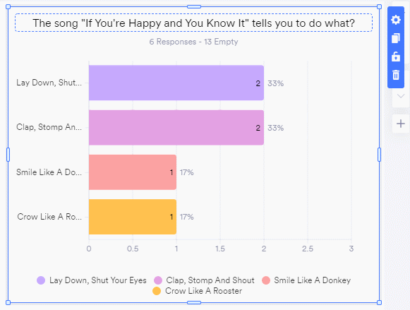 Table Grid Toggle will show the number of responses of each option and its percentage compared to the other options in a table format while the Legend Toggle will list the options side-by-side. Basic Chart doesn’t have the Legend Toggle option.