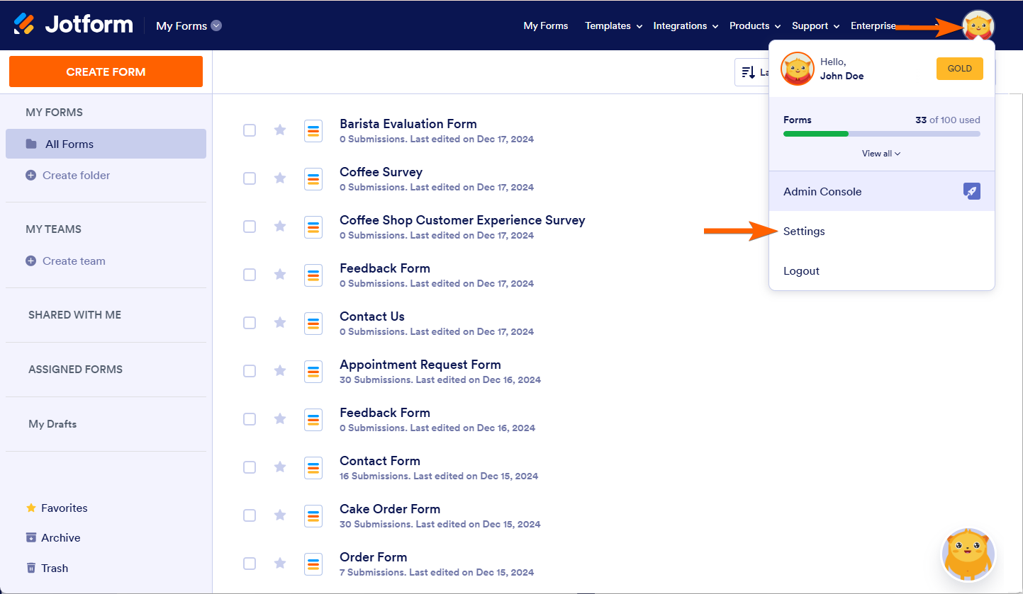 - In My Forms page, click your Profile Picture at the top-right of the navigation menu.