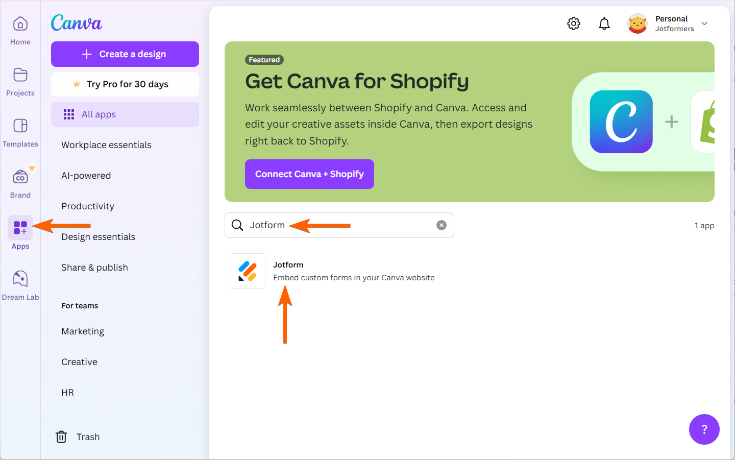 To use Jotform Templates in Canva