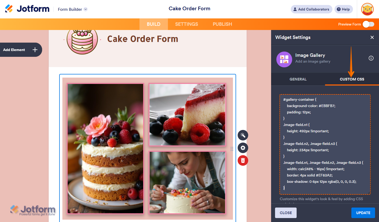 Whether you’re creating a new form or updating an existing one, you can add and set up the Image Gallery widget in a few easy steps. Here’s how to do it: