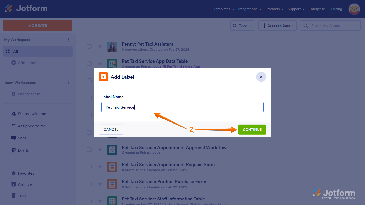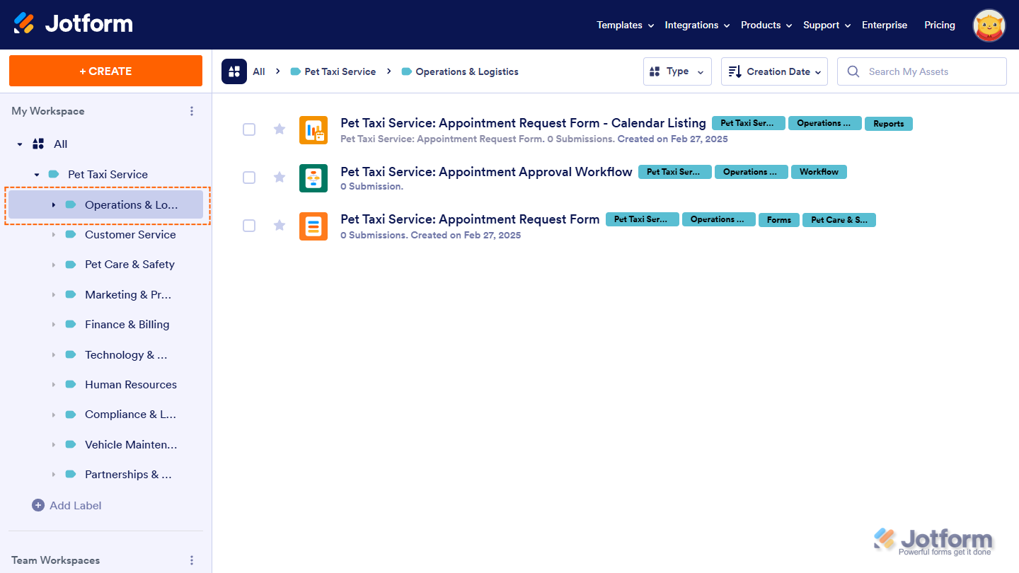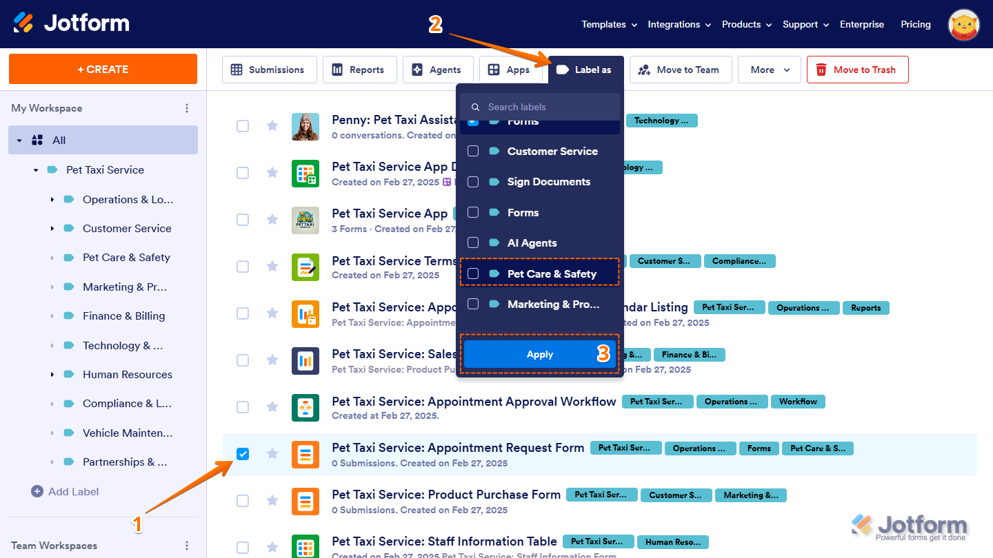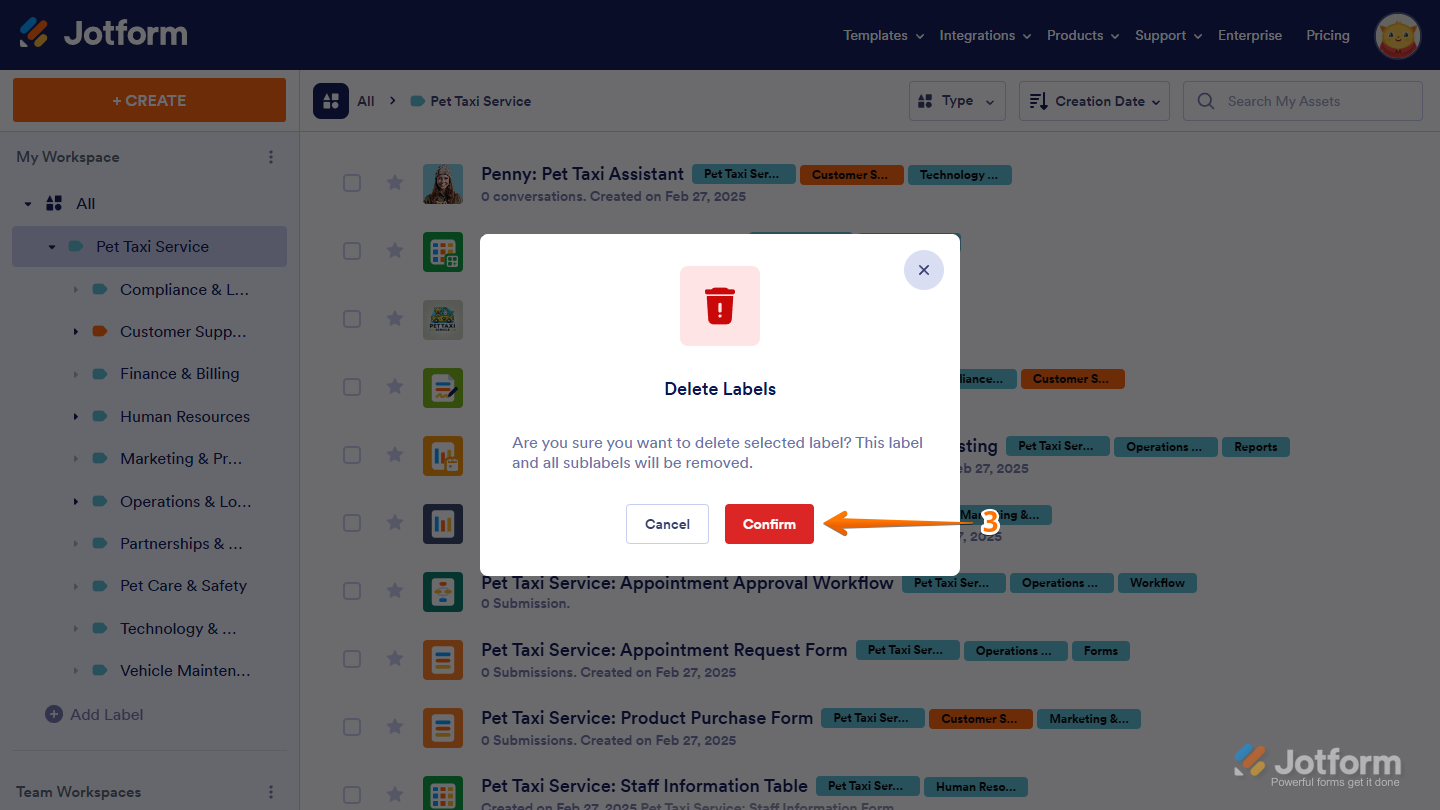 Labels help you organize workspace assets by categorizing them, making it easier to find and manage what you need. Instead of scrolling through a long list, you can filter and access Forms, AI Agents, Workflows, Apps, Sign Documents, Tables, and Reports based on their assigned labels. As your workspace grows, labels keep everything structured, helping you sort assets into meaningful groups. You can create sublabels for more detailed organization, customize labels to fit your workflow, and sort them alphabetically for easier navigation. Since labeled assets remain flexible, you can update or reassign them anytime to keep your workspace organized.