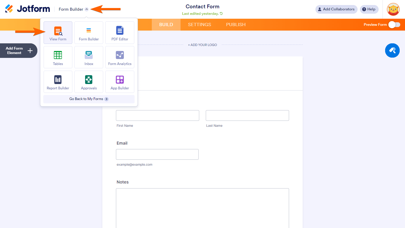 - In the Form Builder, select the roller paint icon in the upper-right corner.