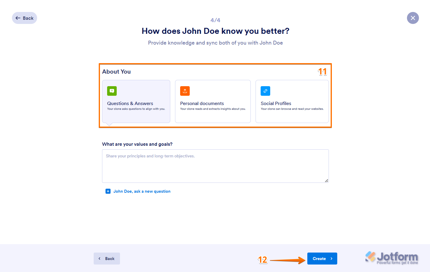 - Question & Answers — Your clone will ask you key questions to better align with your personality and expertise.
