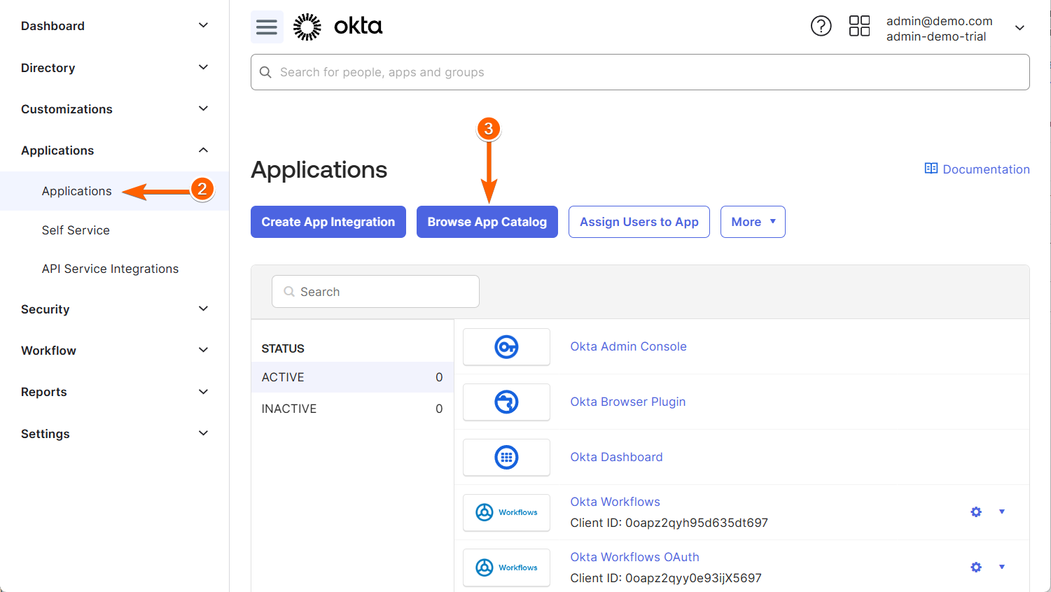 - Now, click on Applications on the left sidebar of the Okta Admin page.