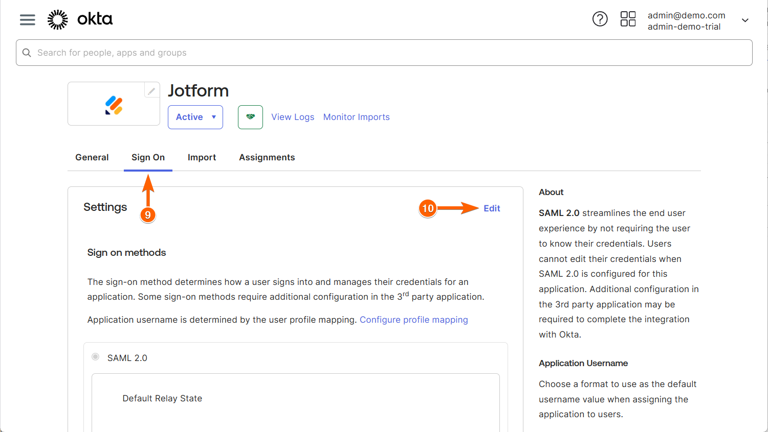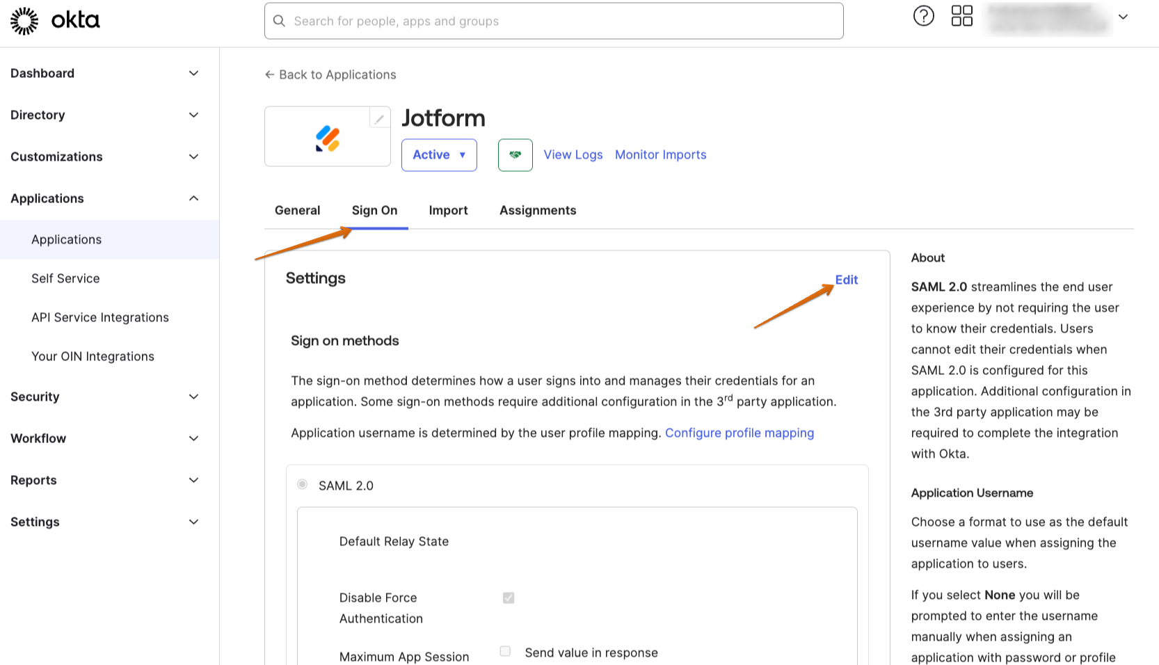 You must access your Administration Panel in Okta to add and set up the Jotform SAML Application. Here’s how to do it: